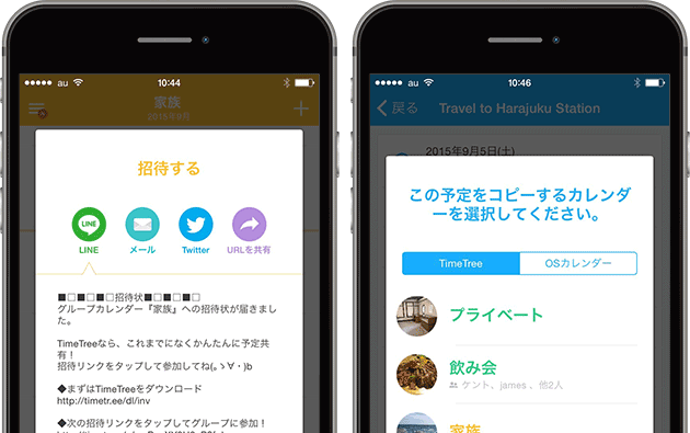 「Time Tree」では「いつどこにする?」「何が食べたい?」というような場所や時間などの決定事項を共有カレンダーに入力しておけば、確認がラクチン。